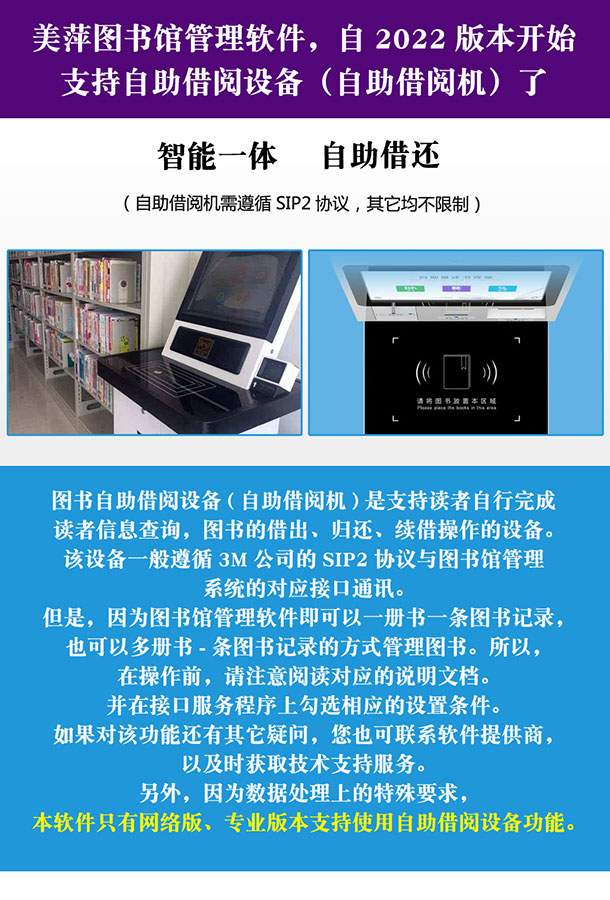 美萍图书馆管理软件,自2022版本开始支持自助借阅设备(自助借阅机)了